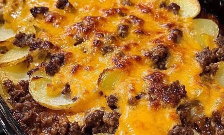 This Cheesy Hamburger Potato Casserole is everything you want in comfort food—rich, creamy, cheesy, and deeply satisfying. The layers of tender potatoes, savory beef, and velvety sauce create the perfect balance of flavor and texture, while the golden cheese topping makes it irresistible. Budget-friendly, versatile, and easy to prepare, it’s a dish you’ll love serving to family and friends. Pair it with a crisp salad or steamed vegetables for a complete, hearty meal.